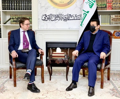 واستقبل مستشار الأمن القومي، بمكتبه اليوم الأحد (٢٣ كانون الثاني ٢٠٢٢)، كبير مانحي البرامج الخاصة بالسلام ودعم الاستقرار ومدير برامج ابتكارات السلام في المعهد الأوربي للسلام، بول سيلز، والوفد المرافق له.