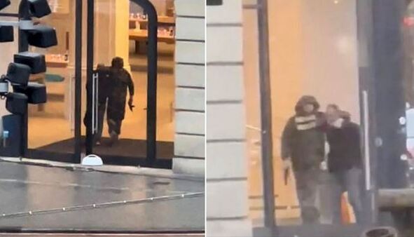 وأظهرت لقطات عرضت عبر وسائل التواصل الاجتماعي رجلاً مسلحاً يمسك بآخر غير مسلّح. وذكرت وسيلة "إيه تي5" الإعلامية أنّ شهوداً عدة سمعوا إطلاق نار داخل متجر "آبل ستور".