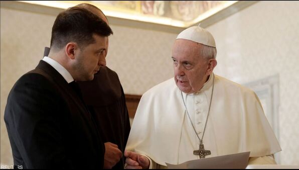 دعا الرئيس الأوكراني فولوديمير زيلينسكي، البابا فرنسيس، إلى زيارة بلاده والقيام بوساطة بين كييف وموسكو، لإنهاء الحرب التي تشنّها منذ حوالى شهر القوات الروسية على أوكرانيا.