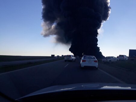 وأكد شهود عيان، ان حريقا كبيرا شبّ بالصهريج المحمل بالوقود،بينما سارع فرق الدفاع المدني الى مكان الحادث لاخماد الحريق، الذي أوقف حركة السير نتيجة ضخامة اللهب والدخان على الطريق .
