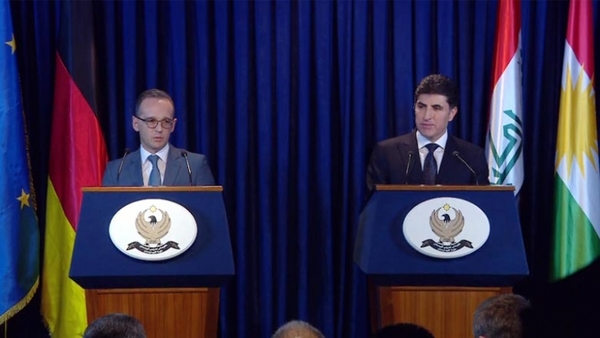 استقبل رئيس حكومة إقليم كوردستان نيجيرفان بارزاني وزير الخارجية الألماني هايكوماس والوفد المرافق له وخلال الاجتماع بحث الجانبان تطورات اكنال الكابينة الوزارية العراقية الجديدة وخطوات تشكيل الحكومة الجديدة لإقليم كوردستان واخر المستجدات السياسية والأمنية في المنطقة ومن ضمنها مباحثات جنيف حول الوضع في سوريا ، كما تم التأكيد على تطوير العلاقات بين الإقليم وألمانيا وعودة النازحين الى مناطقهم وضرورة توفير الأجواء المناسبة لهم من حيث الاستقرار وتوفير الخدمات