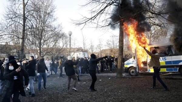 ووقعت الصدامات لليوم الثاني على التوالي الجمعة على خلفية تجمّع لحركة "سترام كورس" المناهضة للهجرة والإسلام التي يقودها الدنماركي السويدي راسموس بالودان.