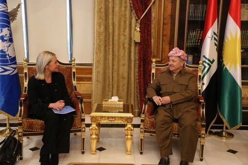 إستقبل الرئيس مسعود بارزاني، أول أمس الخميس، في صلاح الدين، السيدة جينين هينس بلاسخارت، المبعوثة الخاصة للسكرتير العام لمنظمة الأمم المتحدة في العراق والوفد المرافق لها.