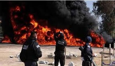 لقي 21 شخصا على الأقل مصرعهم وأصيب 71 آخرون، مساء يوم امس الجمعة، جراء انفجار أنبوب نفط في المكسيك، ويعتقد أن الانفجار قد وقع نتيجة تحطُّم الأنبوب على يد أشخاص يشتبه أنهم لصوص، كانوا يحاولون سرقة النفط، بسبب أزمة الوقود في بلدة تلاهويللبان، بولاية هيدالغو المكسيكية، حيث تعرض العشرات من الاشخاص الذين كانو يتدافعون لملء أوعيتهم، للأحتراق عند اندلاع النيران.