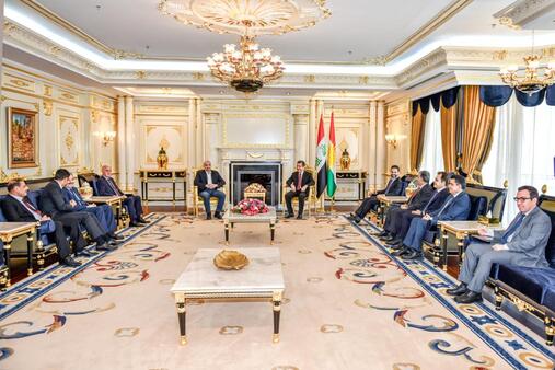 استقبل رئيس حكومة إقليم كوردستان، مسرور بارزاني وبحضور نائب رئيس الحكومة قوباد طالباني، اليوم السبت (11 حزيران 2022)، وفداً رفيعاً من الاتحاد الوطني الكوردستاني برئاسة رئيس الاتحاد الوطني الكوردستاني بافل جلال طالباني.