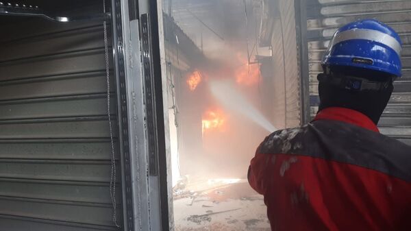 وبينت أنه "تم تطويق السوق من عدة محاور واتخذت من أسطح المنازل القريبة موضعاً لمكافحة النيران من الأعلى إلى داخل السوق المشتعل ولاقت فرق الدفاع المدني صعوبات كبيرة بسبب وجود الكتل الخرسانية التي تحيط بالسوق التجاري من جميع الجهات وتعذر معها دخول عجلات الإطفاء".