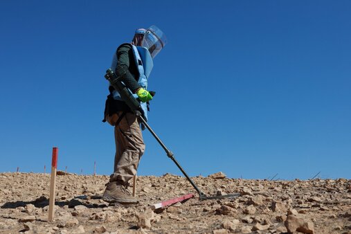 واستطردت عدنان "يتم دعم مديرية الدفاع المدني عن طريق توفير مواد التوعية، والوقاية الشخصية للعاملين على إزالة هذه المخلفات بشكل مباشر، فضلاً عن تقديم الدعم التقني والفني من خلال مرافقة فرق الدفاع المدني أثناء عملية الإزالة والتطهير"، لافتة إلى "دعم جمعية الهلال الأحمر في تنفيذ الأنشطة التوعوية بوضع علامات تحذيرية في مناطق الألغام".