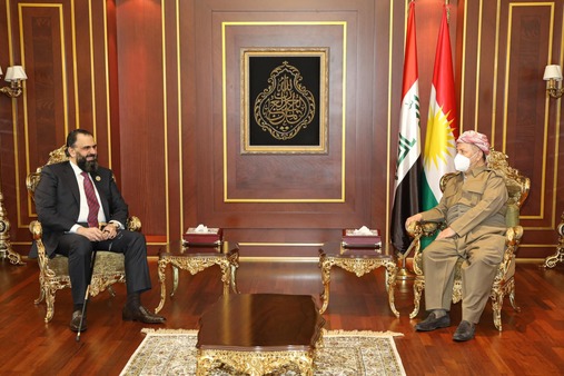 استقبل الرئيس مسعود بارزاني، اليوم الثلاثاء (14 حزيران 2022)، في مصيف صلاح الدين، الشيخ نهرو محمد الكسنزاني، رئيس الطريقة القادرية في كوردستان والعالم.