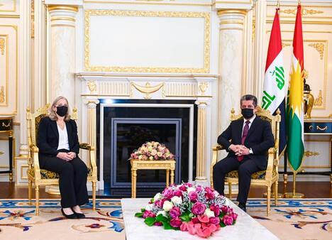 استقبل رئيس حكومة إقليم كوردستان مسرور بارزاني، اليوم الخميس 16 حزيران (يونيو) 2022، السفيرة الأمريكية الجديدة لدى العراق ألينا رومانوسكي.