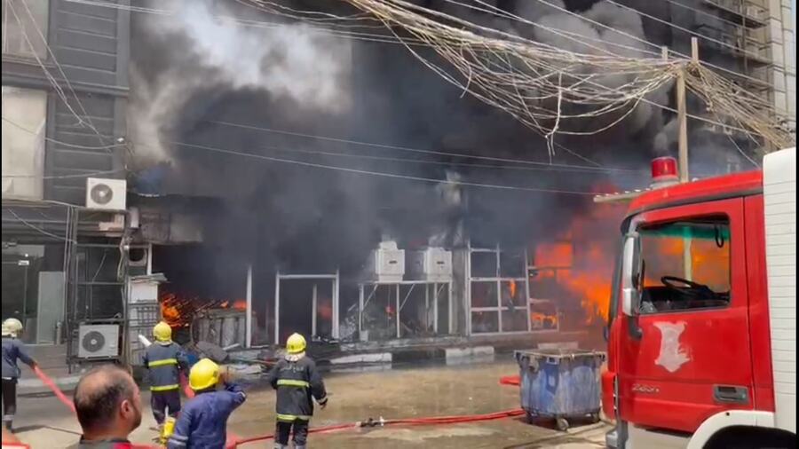 واستنفرت فرق الدفاع المدني وزجت بعجلات الإطفاء التخصصية لتكافح النيران من أربعة محاور وتزيد محوراً خامساً لمكافحة الحريق من الأعلى إلى الأسفل بعد أن زجت بعجلة السلم المخصصة للأبنية المرتفعة لتعجيل السيطرة وإتمام عمليات الإخماد والتبريد ومنع اتساع النيران إلى البنايات التجارية الملاصقة لموقع الحادث.