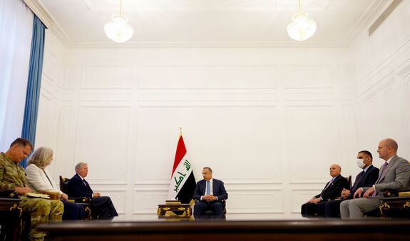بيان حكومي قال إن "الكاظمي أعرب خلال اللقاء عن ترحيبه بالوفد وتطلعه إلى تعزيز العلاقات الثنائية وسبل تطويرها في المجالات الاقتصادية، والثقافية، والتعليمية، وبما يصبّ في مصلحة الشعبين العراقي والأميركي".