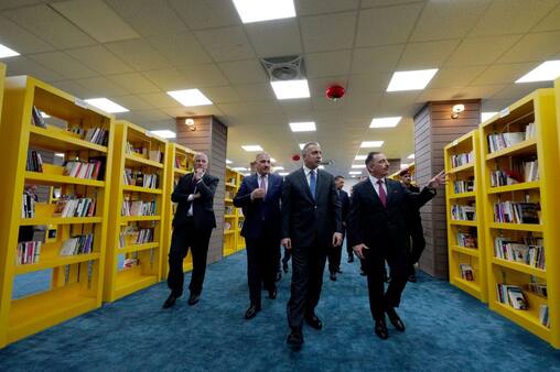 كما اطلع أيضاً على نماذج من الكتب والمخطوطات، وعلى المكتبة الحديثة للجامعة التي تضم كتباً تم التبرع بها من مختلف دول العالم وشخصيات ثقافية وفنية عالمية، وفق بيان صادر عن مكتبه الإعلامي.