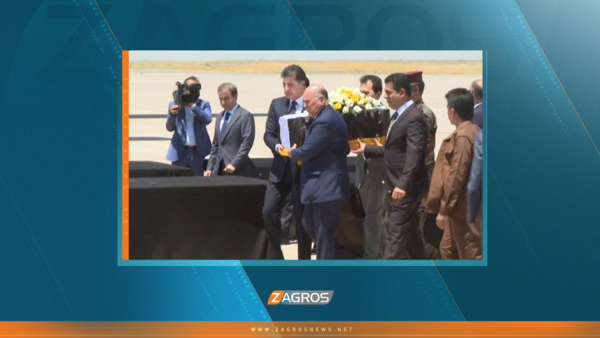 وتقدم رئيس إقليم كوردستان، نيجيرفان بارزاني، مستقبلي جثامين الشهداء، في مطار أربيل قبل نقلهم إلى بغداد، حيث وضع إكليلاً من الزهور على النعوش.