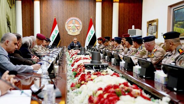 وذكر بيان لمكتبه أن الكاظمي أشاد في مستهل الاجتماع بالجيش العراقي الذي "قدّم التضحيات من أجل الوطن"، مؤكداً أن الحكومة ومنذ بداية تشكيلها عملت على دعم الجيش العراقي، وبناء المؤسسة العسكرية؛ بما يؤهلها للقيام بواجباتها في حماية حدود العراق وحياة المواطنين.
