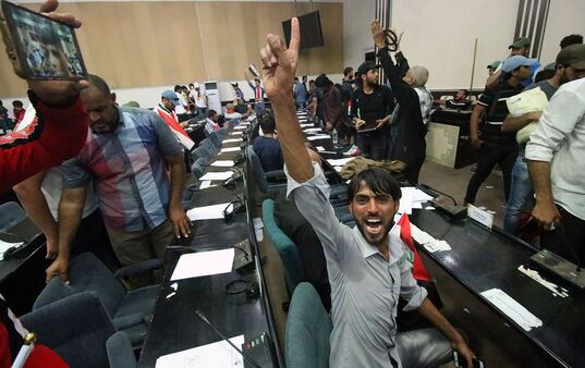 وقال الكاظمي «أدعو المتظاهرين إلى الانسحاب الفوري من مبنى البرلمان الذي يمثل سلطة الشعب والقانون».