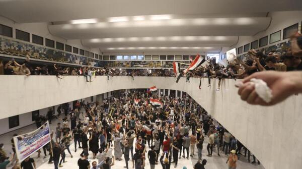 واقتحم مئات المتظاهرين المؤيدين للتيار الصدري الأربعاء، مبنى البرلمان في المنطقة الخضراء المحصنة في وسط بغداد والتي تضمّ مؤسسات حكومية وسفارات أجنبية، للتنديد بمرشح خصوم الصدر لرئاسة الوزراء، في استعراض جديد للقوة وسط أزمة سياسية معقّدة يعيشها العراق منذ تسعة أشهر.