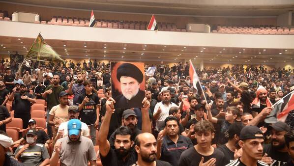 ودخل مئات من المتظاهرين البرلمان وقاعته الرئيسية رافعين الأعلام العراقية وصور مقتدى الصدر، بعد أن اقتحموا المبنى الأربعاء ورفعوا إشارة النصر والتقطوا الصور.