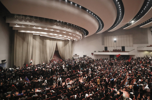 دخل مئات من المتظاهرين البرلمان وقاعته الرئيسية رافعين الأعلام العراقية وصور مقتدى الصدر، كما أفاد صحافيون في فرانس برس من المكان.