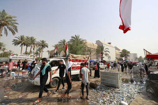 واقتحم مناصرو زعيم التيار الصدري مقتدى الصدر، أواخر تموز المنطقة الخضراء المحصنة وسط بغداد ودخلوا البرلمان، قبل أن ينقلوا اعتصامهم إلى محيطه.