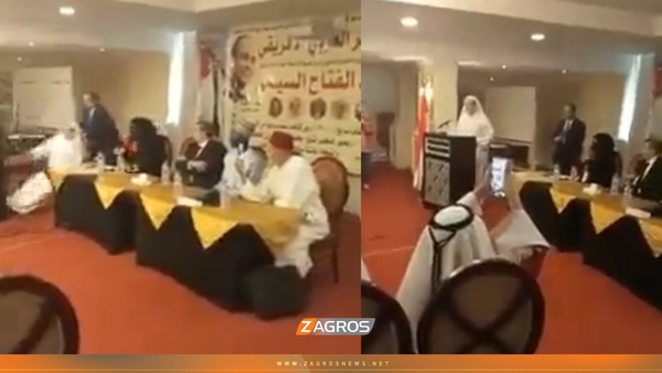 وكان الدبلوماسي الراحل يقف على منصة الخطاب، ويتحدث الى ادارة المؤتمر، ويخاطب الجمهور حيث امتدح القيادات العربية في مصر والخليج، مثنيا على عملهم في حفظ الامن والامان.