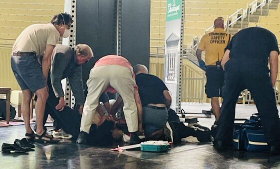وأظهرت تسجيلات فيديو تم تداولها على وسائل التواصل الاجتماعي أشخاصا يسرعون لنجدة الكاتب بعد تعرّضه للاعتداء.