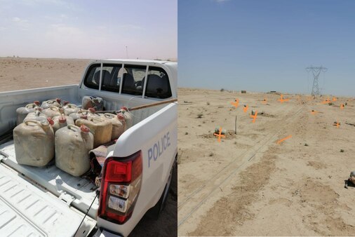 وذكر بيان للوزارة أن مفارز قسم شرطة بيجي بالتعاون مع سرية طوارئ كهرباء بيجي، تمكنت أثناء التفتيش في منطقة محطة كهرباء صلاح الدين الحرارية، من العثور على ٢٥ عبوة ناسفة على شكل (جلكانات سعة ٢٠ لتر).