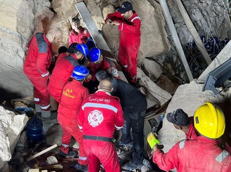 واستمر العمل طيلة ساعات الليل وتمكنت فرق الدفاع المدني من إيصال الأوكسجين ومياه الشرب والطعام للمحتجزين عبر إتمام عمل ثغرات في كومة الركام والكتل الخرسانية مع التواصل اللفظي المستمر لطمأنتهم، بحسب البيان.