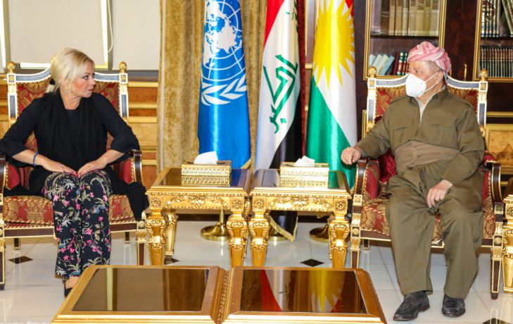استقبل الرئيس مسعود بارزاني، اليوم الاثنين (22 آب 2022)، الممثلة الخاصة للأمين العام للأمم المتحدة في العراق، جنين هينيس-بلاسخارت.