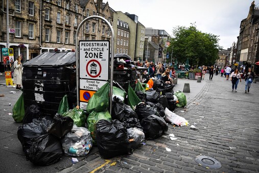 والخميس الماضي بدأ عمّال جمع النفايات التابعون للمجلس البلدي لمدينة أدنبره إضرابا لمدة 12 يوما بعدما رفضوا عرضا لزيادة رواتبهم بنسبة ثلاثة بالمئة اعتبروه "مثيرا للسخرية" وسط الأوضاع الاقتصادية الراهنة.