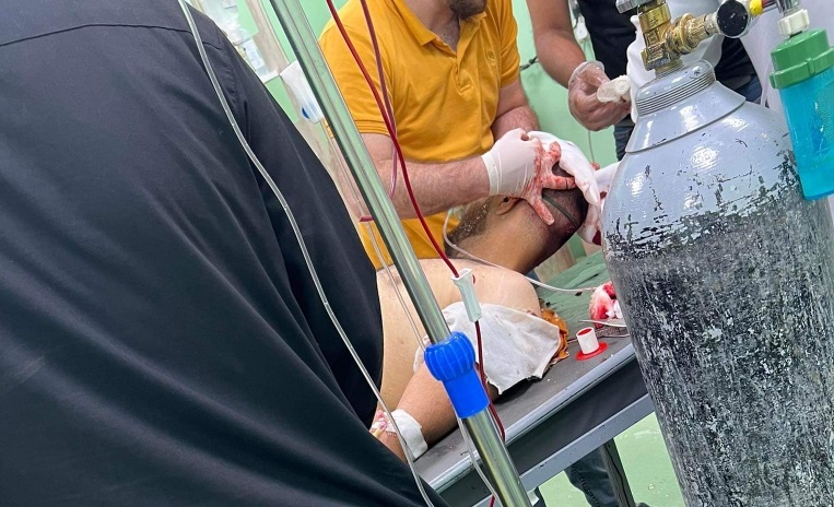 الصورة المرفقة للمجنى عليه خلال نقله إلى المستشفى: