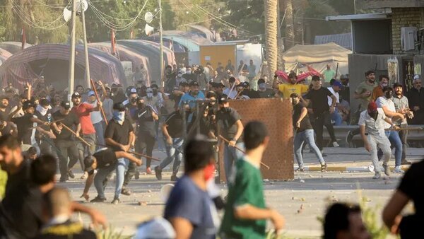 وأصيب ما لا يقل عن 380 شخصا في المواجهات العنيفة في المنطقة الخضراء المحصنة في العاصمة العراقية على ما أوضح المصدر نفسه. وبعد ليلة هادئة، تجددت صباح الثلاثاء المواجهات العنيفة بين أنصار رجل الدين الشيعي النافذ والجيش وعناصر من الحشد الشعبي الموالي لإيران. ويسمع إطلاق نار من أسلحة آلية وقاذفات صاروخية في أرجاء العاصمة مصدرها المنطقة الخضراء على ما أفاد مراسلو وكالة فرانس برس.