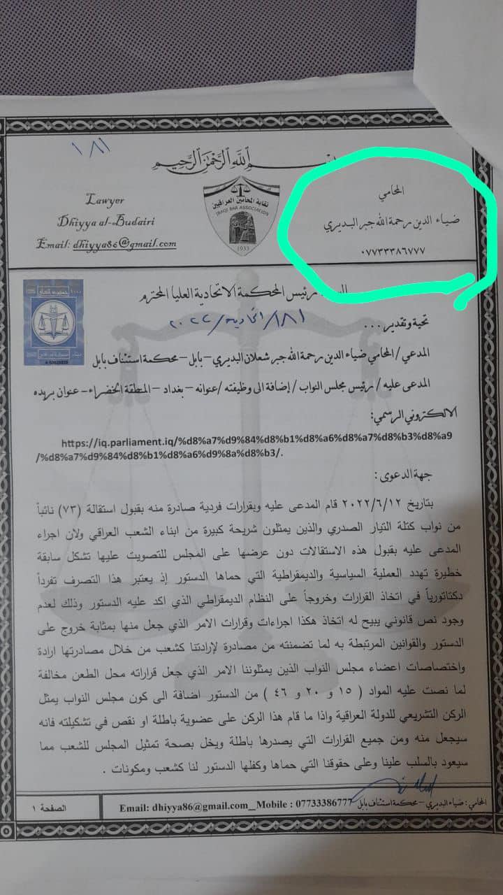وتم رفع دعوى لدى المحكمة الاتحادية العليا للطعن بقبول استقالات نواب الكتلة الصدرية (بالعدد 181 / اتحادية / 2022).