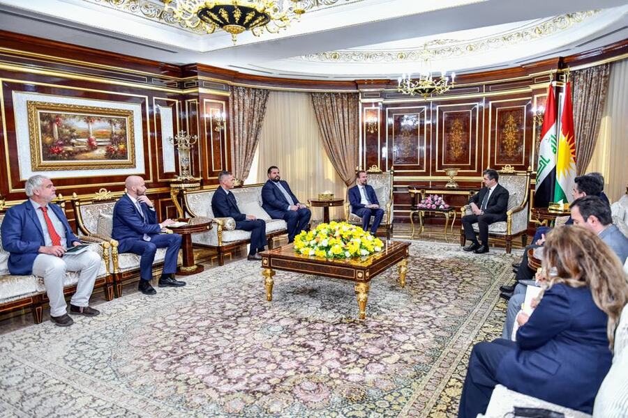 استقبل رئيس حكومة إقليم كوردستان مسرور بارزاني، اليوم الخميس (8 أيلول 2022)، وفداً من الاتحاد الأوروبي برئاسة سفير الاتحاد الأوروبي لدى العراق فيله فاريولا.