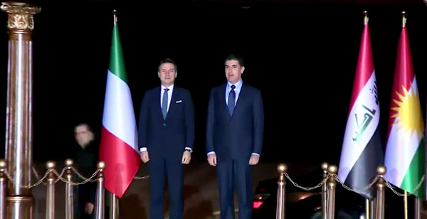 وصل رئيس الوزراء الإيطالي، جوزيبي كونتي، والوفد المرافق له، الى مطار اربيل الدولي، مساء اليوم الاربعاء، حيث كان في استقباله رئيس حكومة اقليم كوردستان نيجيرفان بارزاني.