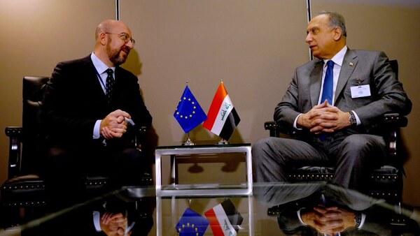 التقى رئيس مجلس الوزراء العراقي مصطفى الكاظمي، اليوم الأربعاء (21 أيلول 2022) في نيويورك، رئيس المجلس الأوروبي، شارل ميشيل، وذلك على هامش المشاركة في اجتماعات الجمعية العامة للأمم المتحدة.