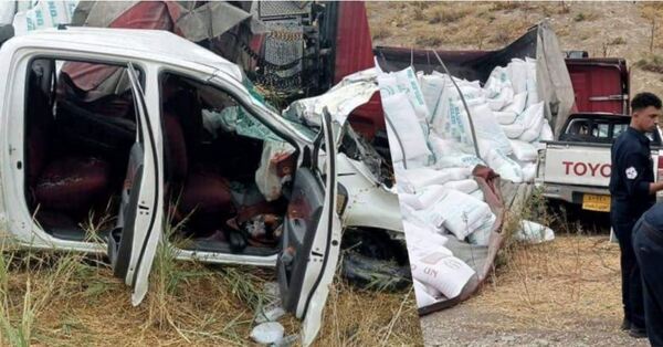 ووقع حادث الاصطدام بين شاحنة تحمل مادة الطحين وسيارة تويوتا بيك أب.