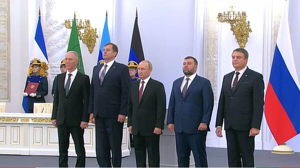 وقّع الرئيس الروسي فلاديمير بوتين الجمعة على معاهدات ضم أربع مناطق أوكرانية تحتلها القوات الروسية هي لوغانسك ودونيتسك وخيرسون وزابوريجيا خلال حفل كبير أقيم في الكرملين.