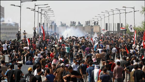 وتوافدت أعداد كبيرة من المتظاهرين صباح اليوم إلى ساحة التحرير في العاصمة بغداد وسط اجراءات أمنية غير مسبوقة وشلل تام في جميع الطرق، حيث انطلقت الحشود في تظاهرات لإحياء الذكرى الثالثة لاحتجاجات "تشرين" عام 2019.
