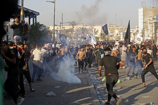 واندلعت الاحتجاجات في تشرين الأول/أكتوبر 2019 في جميع أنحاء البلاد، ولا سيما في الجنوب واستمرت عدة أشهر في البلد الغني بالنفط، واعتصم خلالها مئات الآلاف من المتظاهرين في ساحة التحرير مستنكرين تفشي البطالة وانهيار البنى التحتية وانعدام الديموقراطية.