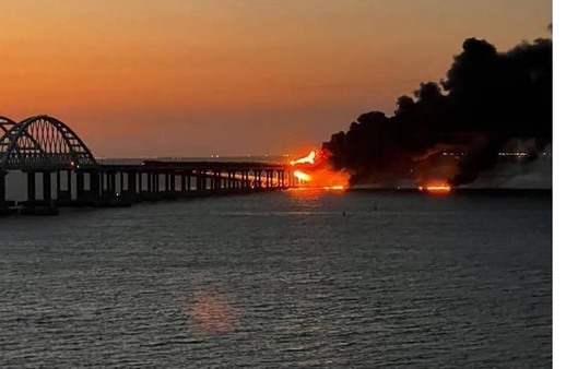 من جانبه نشر أوليكسي دانيلوف رئيس مجلس الأمن القومي والدفاع الأوكراني مقطع فيديو للجسر المحترق على مواقع التواصل الاجتماعي إلى جانب مقطع فيديو لمارلين مونرو وهي تغني "عيد ميلاد سعيد، سيدي الرئيس"، في إشارة لعيد ميلاد بوتين الـ 70 يوم أمس الجمعة (7 تشرين الأول).