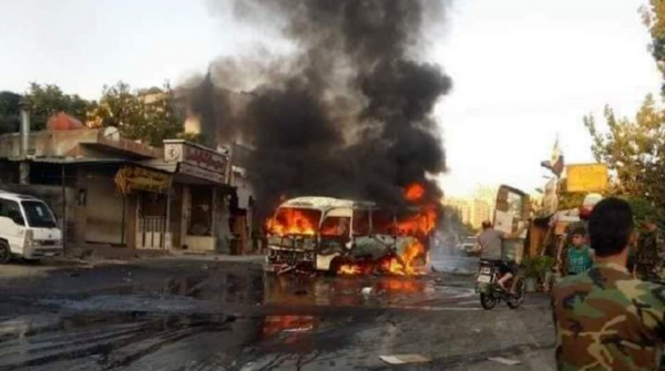 وقالت وكالة سانا السورية أن مصدراً عسكرياً سورياً ذكر في بيان: أن " حافلة مبيت عسكرية في ريف دمشق، تعرضت صباح هذا اليوم لتفجير إرهابي بعبوة ناسفة مزروعة مسبقاً، ما أدى إلى استشهاد 18 عسكرياً وإصابة27 آخرين".
