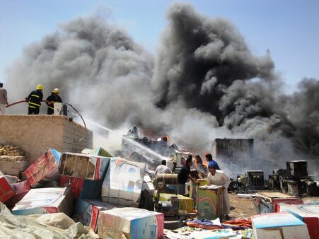 واضاف المصدر الذي طلب عدم الكشف عن اسمه، ان "20 فرقة من الدفاع المدني تشارك في اخماد الحريق"، مشيرا الى ان "اسباب اندلاعه لم تعرف لغاية الان".