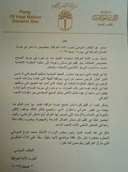 وجرى خلال اللقاء بحث الأوضاع العامة في العراق ومنها ما يتعلق بالعلاقة بين المركز والإقليم، حيث تم التأكيد على أهمية الحوار البنّاء من أجل حسم المسائل العالقة بين الحكومة الاتحادية وحكومة إقليم كوردستان وفق الدستور وبالشكل الذي يضمن حقوق جميع المواطنين ويؤمّن احتياجاتهم ومطالبهم.