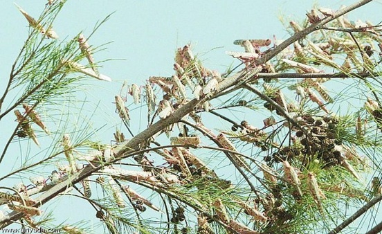 مبينة أن"الجرادة البالغة تلتهم يومياً ما يعادل وزنها تقريباً من الغذاء الطازج اي غرامين يومياً، ويستهلك سرب صغير جداً من الجراد في اليوم الواحد ما يعادل كمية الغذاء التي يستهلكها نحو 35000 شخص"، الامر الذي يسبب خطرا كبيا على الاقتصاد والامن الغذائي، خاصة في المناطق المنهكة اقتصاديا.