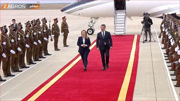 وكان في استقبال ميلوني في مطار أربيل الدولي رئيس وزراء إقليم كوردستان مسرور بارزاني وعدد من وزراء حكومته حيث جرت مراسم رسمية داخل المطار.