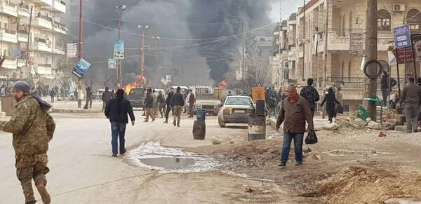 وبحسب مصادر محلية "أصيب أكثر من عشرة أشخاص، بينهم أطفال، جراء انفجار سيارة مفخخة بالقرب من مشفى ديرسم وسط مدينة عفرين".