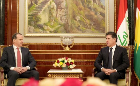 اجتمع رئيس إقليم كوردستان، نيجيرفان بارزاني، مع مبعوث الرئيس الأميركي لشؤون الشرق الأوسط وشمال أفريقيا ، بريت ماكغورك، في أربيل.