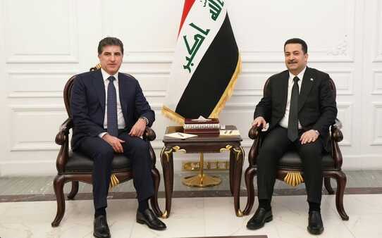 وذكر بيان للمكتب الإعلامي للسوداني أن الأخير استقبل، رئيس إقليم كوردستان والوفد المرافق له، وأنه جرى خلال اللقاء البحث في أهم المواضيع والقضايا على الصعيد الوطني، وسبل تعزيز التنسيق والتعاون بين الحكومة الاتحادية وحكومة الإقليم.