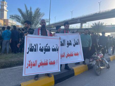 وخرج عدد كبير من المواطنين في ساحة التحرير وسط بغداد، ومجسرات ثورة العشرين في النجف ومحافظات واسط وبابل وكربلاء حاملين لافتات تستنكر ارتفاع سعر الدولار، وتطالب مجلس النواب باتخاذ إجراءات جادة "لمنع تجويع الشعب".