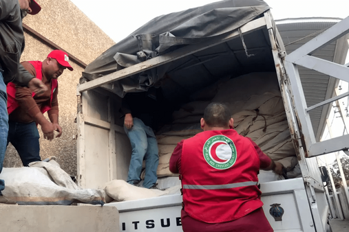 وكشف الهلال أن 60 طناً من المساعدات الإغاثية والغذائية والطبية تم شحنها بمطار بغداد الدولي لإرسالها إلى سوريا، وأشار إلى أن المساعدات الإنسانية التي تم تجهيزها بغرض إرسالها كانت بالتنسيق ودعم الحكومة العراقية.